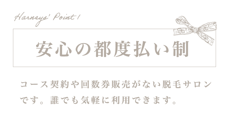 選べる5ヶ所脱毛!」のように、ご自身に合わせて脱毛することができる完全都度払いの脱毛サロンです。